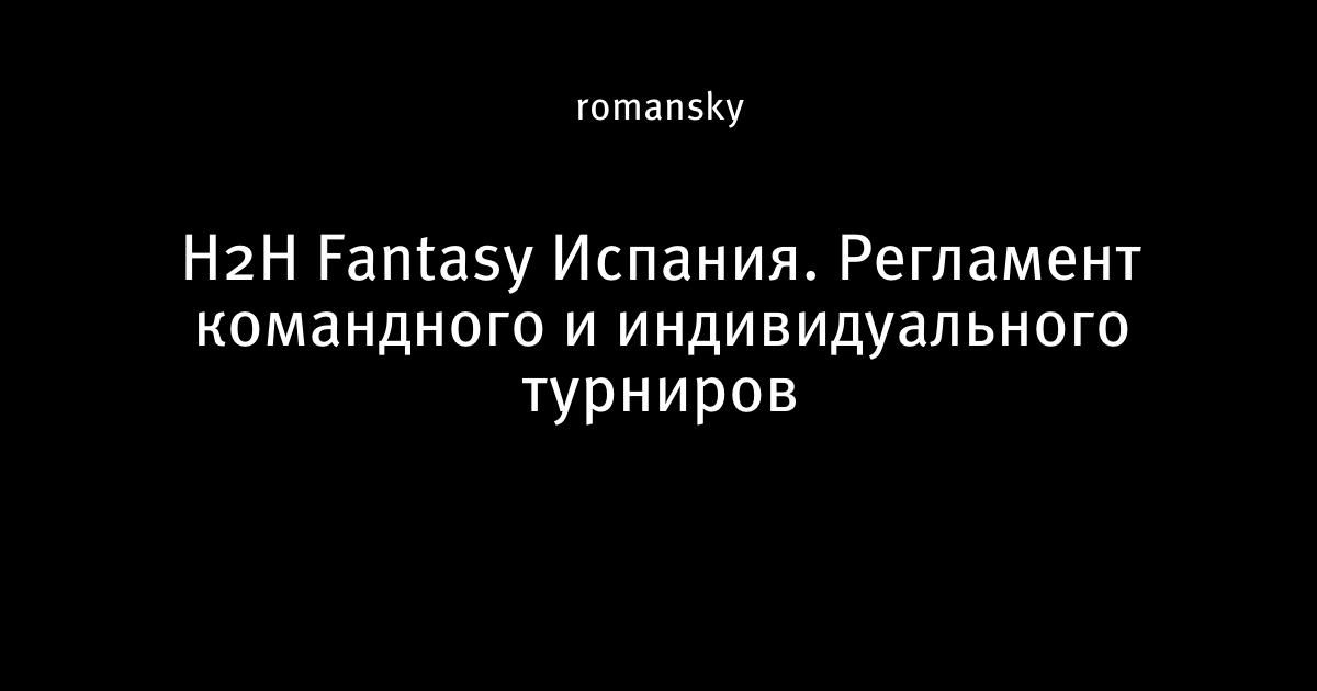 H2H Fantasy Испания. Регламент командного и индивидуального турниров