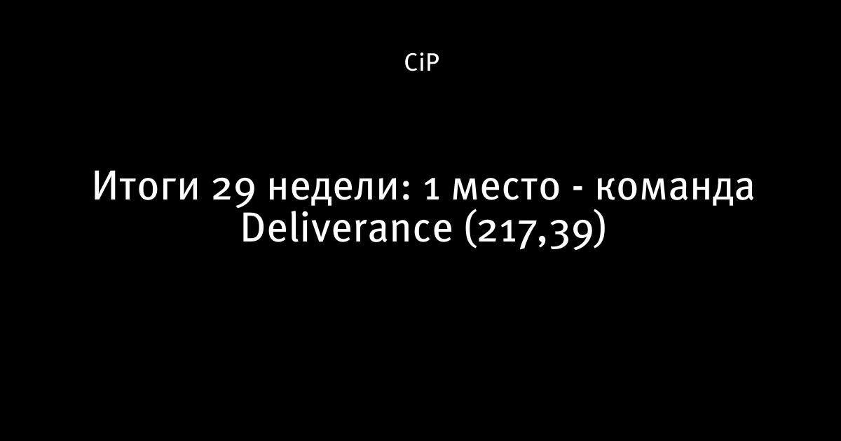 Итоги 29 недели: 1 место - команда Deliverance (217,39)