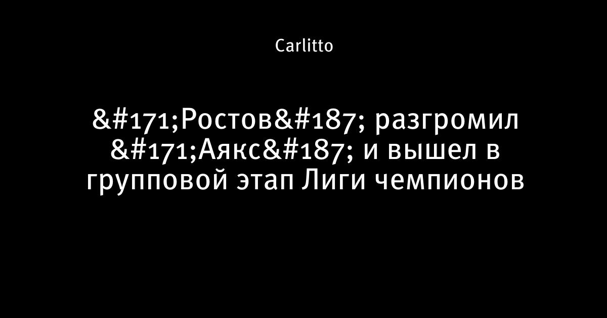 24 августа 2016, 23:28 «Ростов» разгромил «Аякс» и вышел в групповой этап Лиги чемпионов 1 Автор Carlitto Этот пост опубликован в блоге на Трибуне Sports.ru. Присоединяйтесь к крупнейшему сообществу спортивных болельщиков! Другие посты блога Телевизор 3.0 Ростов Лига чемпионов УЕФА Аякс