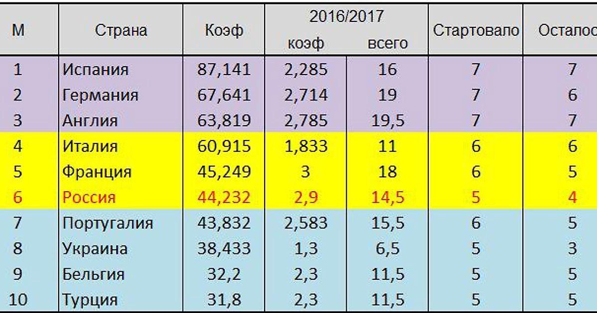 Доброго времени суток, уважаемые читатели. После вчерашней феерии устроенной Ростовом наша ассоциация обошла португальскую и снова взобралась на шестую строчку. Результат этот временный, еще только самое начало сезона и все может измениться, однако весьма и весьма приятный.