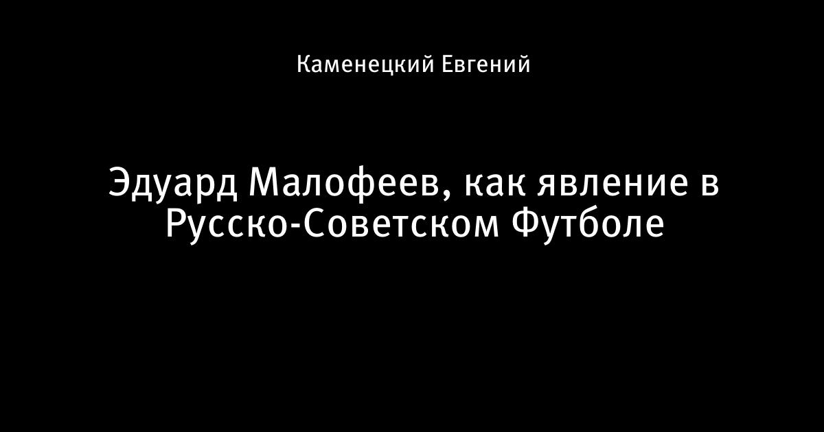 Эдуард Малофеев, как явление в Русско-Советском Футболе