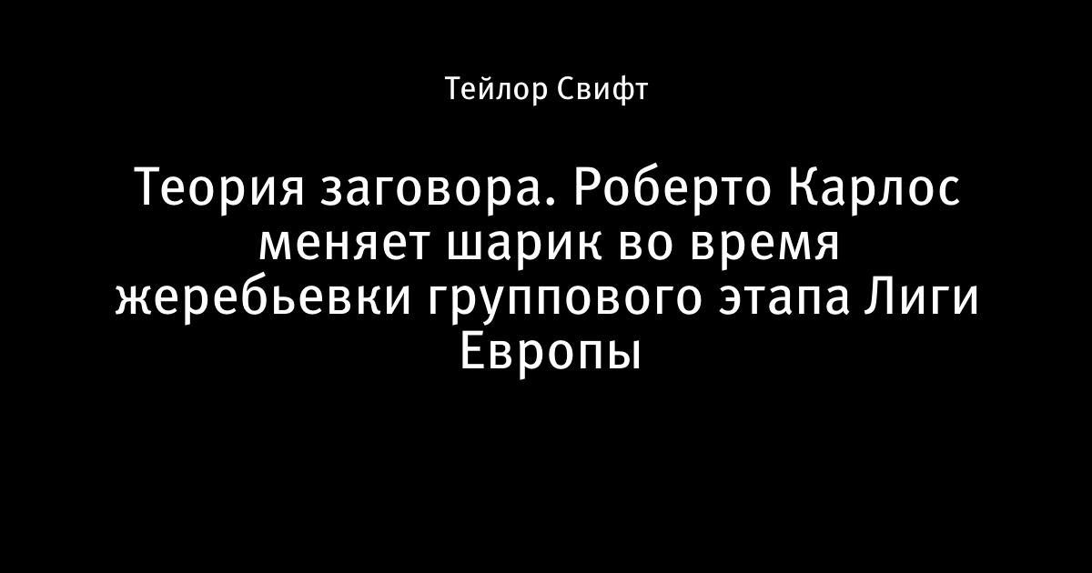 27 августа 2016, 09:53 Теория заговора. Роберто Карлос меняет шарик во время жеребьевки группового этапа Лиги Европы 1 Автор Тейлор Свифт Этот пост опубликован в блоге на Трибуне Sports.ru. Присоединяйтесь к крупнейшему сообществу спортивных болельщиков! Другие посты блога Тейлор Свифт Роберто Карлос Лига чемпионов УЕФА
