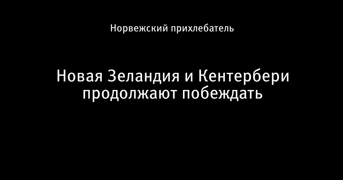 Как я ни старался, отыскать видеотрансляцию матча второго тура Кентербери-Тасман мне так и не удалось. Игра выдалась для хозяев намного более упорной, чем первая встреча с Оклендом. Тасманцы повели в счете благодаря двум штрафным Марти Бэнкса, зачем-то променявшего Хайлендерс на итальянский Бенеттон, на что Кентебери ответили умопомрачительным проходом Роба Томпсона, бодро протащившего мяч по центру не хуже Бэррета или Бена Смита, завершенного заносом у самого угла восходящей звездой Жорби Бэрретом. Долгое время разрыв в счете оставался небольшим, но с 60-й минуты Кентербери начал стремительно уходить в отрыв: сначала мяч по бровке протащил гигант Берд, затем Велла подхватил натиск Тодда, в одиночку почти продавившего оборону Тасман, следом хозяева выдали красивую размашистую атаку, а довершили разгром выдающимся перехватом Жорди Бэррета и изящными перешагиваниями Финау. Итог – 45-14 и вторая бонусная победа.