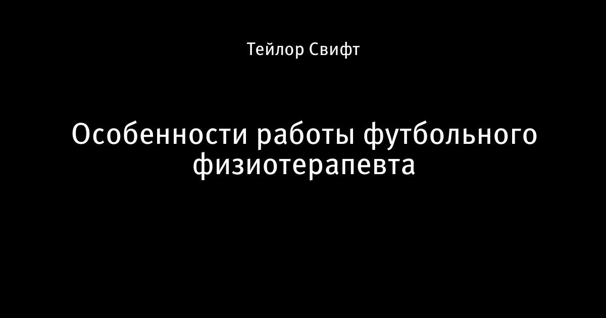 29 августа 2016, 00:15 Особенности работы футбольного физиотерапевта 1 Автор Тейлор Свифт Этот пост опубликован в блоге на Трибуне Sports.ru. Присоединяйтесь к крупнейшему сообществу спортивных болельщиков! Другие посты блога Вы это видели?
