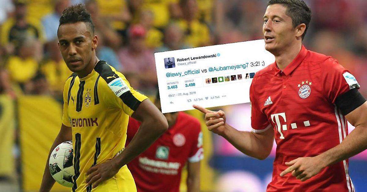 На газоне топ-форварды уже начали своё противостояние, а через твиттер Обамеянг и Левандовски устроили и вербальное. Своим дублем в матче с «Майнцем» габонский нападающий «Боруссии» последовал так называемому вызову на бой со стороны поляка, который забил сразу 3 гола в матче с «Вердером».