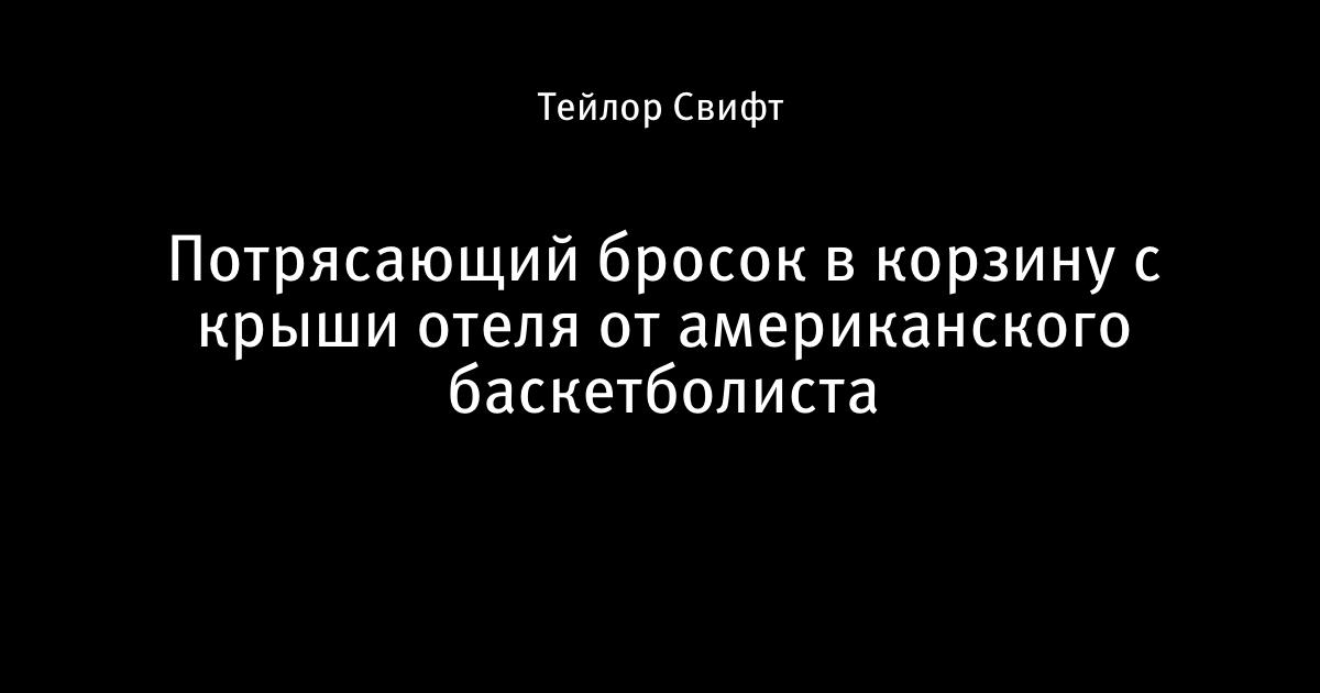 30 августа 2016, 12:47 Потрясающий бросок в корзину с крыши отеля от американского баскетболиста Автор Тейлор Свифт Этот пост опубликован в блоге на Трибуне Sports.ru. Присоединяйтесь к крупнейшему сообществу спортивных болельщиков! Другие посты блога Тейлор Свифт Баскетбол - видео