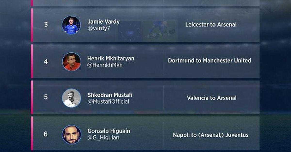 Самые популярные трансферы/слухи этого лета в Твиттере
