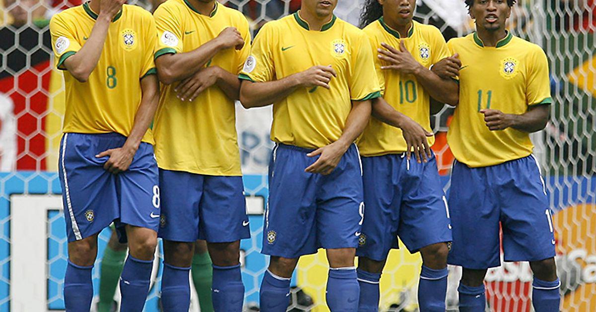 Сборная Бразилии на ЧМ-2006: Кака, Адриано, Роналдо, Роналдиньо и Зе Роберто.