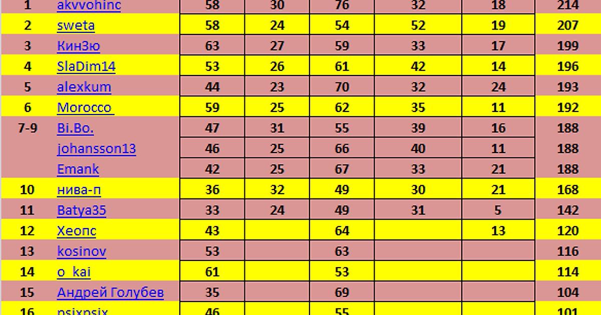 Первые итоги Гран-При (усеченные)
