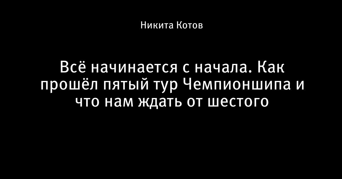 Всё начинается с начала. Как прошёл пятый тур Чемпионшипа и что нам ждать от шестого