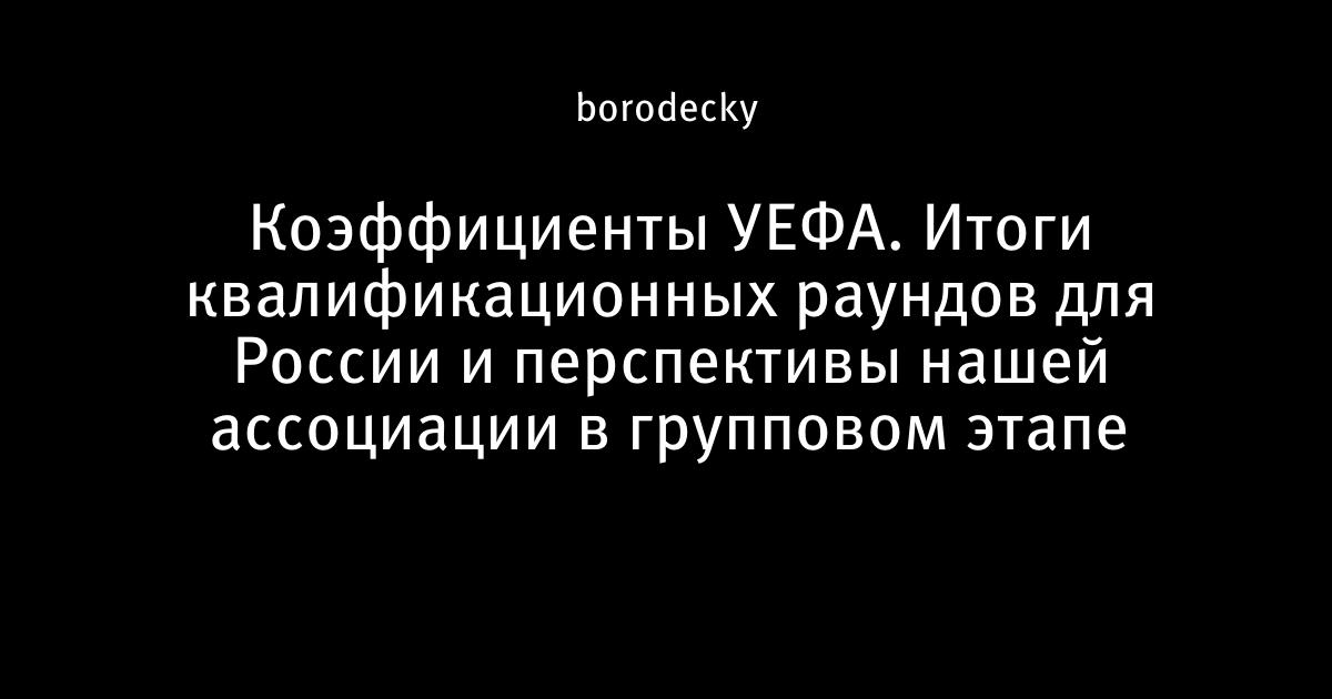 Коэффициенты УЕФА. Итоги квалификационных раундов для России и перспективы нашей ассоциации в групповом этапе