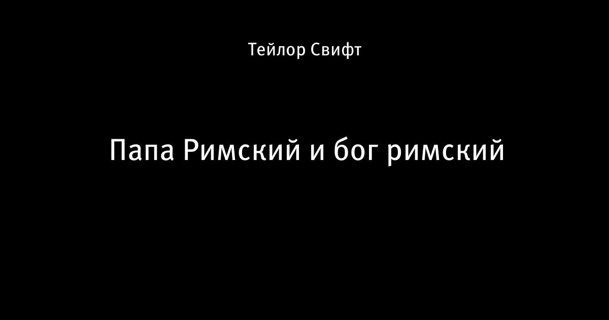 4 сентября 2016, 11:28 Папа Римский и бог римский Автор Тейлор Свифт Этот пост опубликован в блоге на Трибуне Sports.ru. Присоединяйтесь к крупнейшему сообществу спортивных болельщиков! Другие посты блога Тейлор Свифт Франческо Тотти Рома