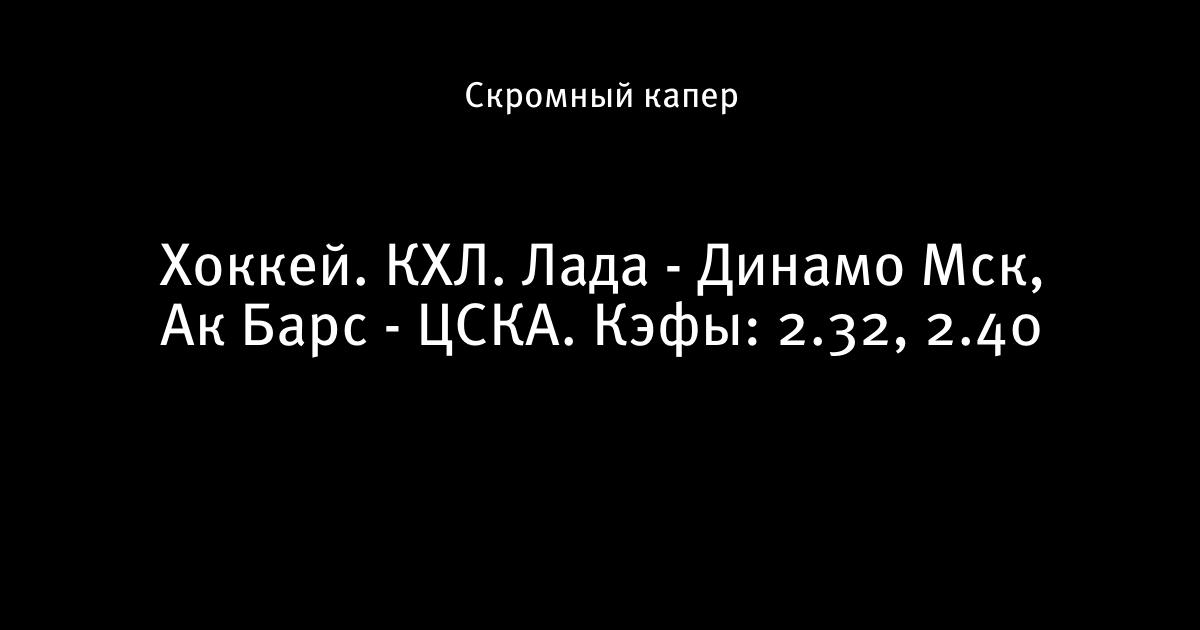 Хоккей. КХЛ. Лада - Динамо Мск, Ак Барс - ЦСКА. Кэфы: 2.32, 2.40