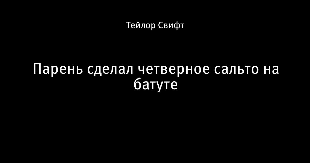 6 сентября 2016, 11:09 Парень сделал четверное сальто на батуте 1 Автор Тейлор Свифт Этот пост опубликован в блоге на Трибуне Sports.ru. Присоединяйтесь к крупнейшему сообществу спортивных болельщиков! Другие посты блога Тейлор Свифт