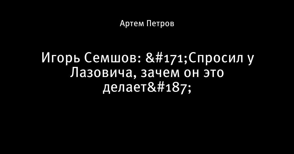 Игорь Семшов: «Спросил у Лазовича, зачем он это делает»