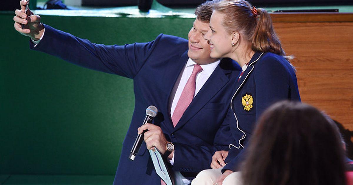 Комментатор Дмитрий Губерниев и фехтовальщица Виктория Бойкова.