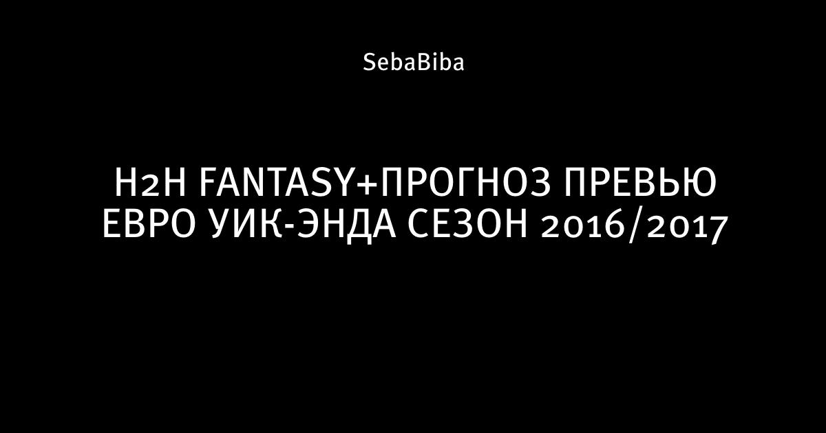 Н2Н FANTASY+ПРОГНОЗ ПРЕВЬЮ ЕВРО УИК-ЭНДА СЕЗОН 2016/2017