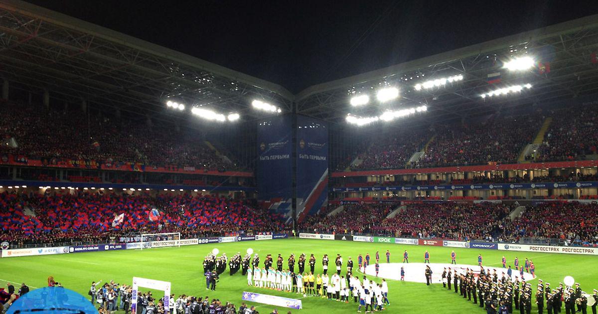 Проход на трибуны не занял длительного времени и мы моментально попали на свои места. Старту матча ЦСКА — “Терек” предшествовало шумное празднование в честь открытия арены с обязательным фейерверком. Гимн России на новом стадионе исполнила дочь вратаря Сергея Перхуна Анастасия.