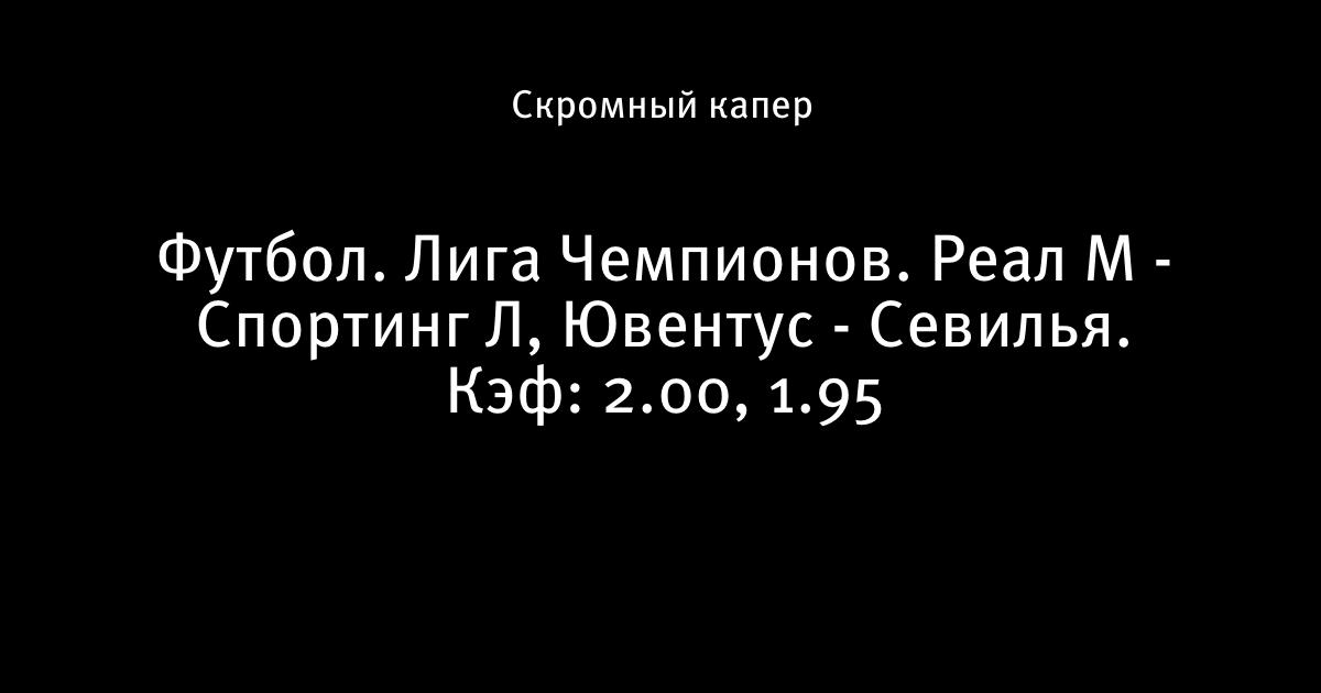 Футбол. Лига Чемпионов. Реал М - Спортинг Л, Ювентус - Севилья. Кэф: 2.00, 1.95