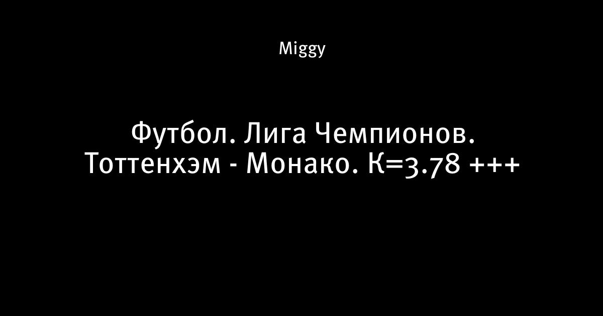 Футбол. Лига Чемпионов. Тоттенхэм - Монако. К=3.78 +++