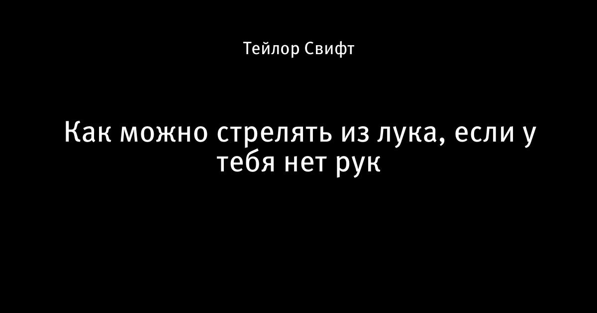 14 сентября 2016, 14:24 Как можно стрелять из лука, если у тебя нет рук Автор Тейлор Свифт Этот пост опубликован в блоге на Трибуне Sports.ru. Присоединяйтесь к крупнейшему сообществу спортивных болельщиков! Другие посты блога Тейлор Свифт