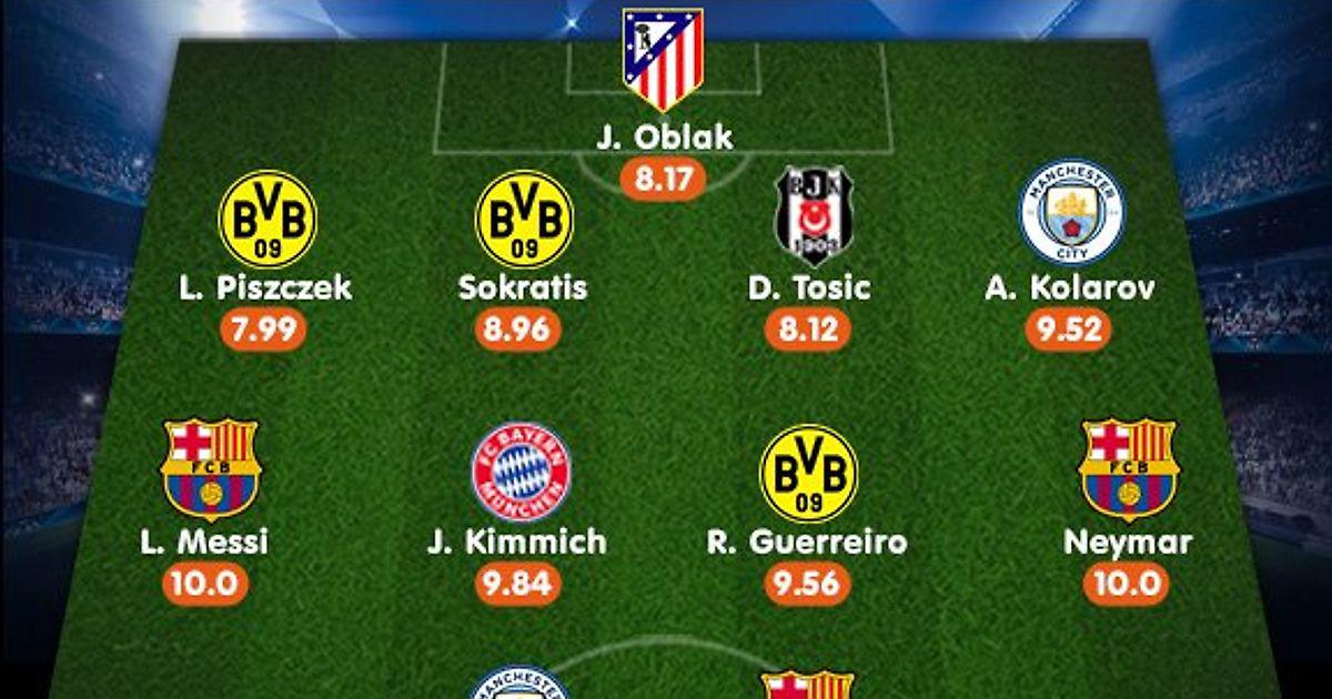 Символическая сборная 1 тура Лиги Чемпионов по версии WhoScored