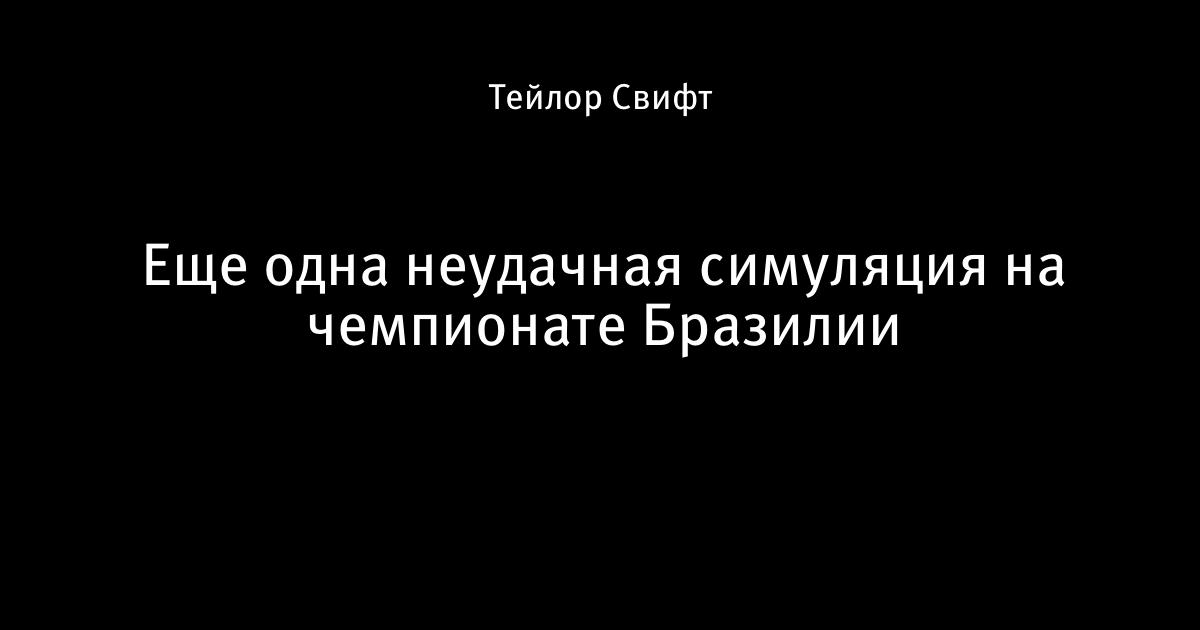 15 сентября 2016, 16:28 Еще одна неудачная симуляция на чемпионате Бразилии Автор Тейлор Свифт Этот пост опубликован в блоге на Трибуне Sports.ru. Присоединяйтесь к крупнейшему сообществу спортивных болельщиков! Другие посты блога Тейлор Свифт Фламенго Палмейрас Габриэл Жезус