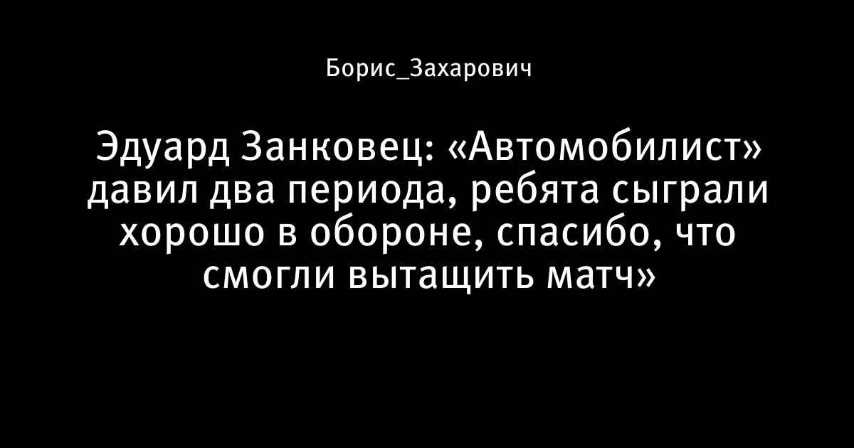 Эдуард Занковец: «Автомобилист» давил два периода, ребята сыграли хорошо в обороне, спасибо, что смогли вытащить матч»