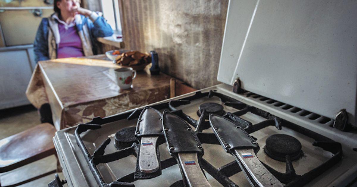Дом Галины Чувиной разваливается, причем в прямом смысле: если слегка подпрыгнуть в гостиной, на терраске и в кухне посыплется штукатурка. Древняя печка дымит в противоестественную сторону. Поэтому потолок везде цвета копченой скумбрии. Одно «преимущество», на таком фоне ярче играют золотом развешанные по стенам иконы, чувинские многочисленные медали, а на подоконнике – блестящие кубки. Свои ножи Галина Чувина украсила полосками цветов российского триколора в стиле Basic.— Вы патриот?— Есть немного. За Россию всех порву, — отвечает Галина. — Что бы вы сказали людям, которые уверяют, что из Рашки пора валить?— Все равно вернетесь, гады. И слово мне это ваше московское не нравится — «Рашка», я даже не поняла сначала. Тот, кто пожил здесь, поработал, пострадал, не уедет.— Вот вам и спасибо никто не скажет за ваши победы, и живете вы в доме-развалюхе. А все равно патриот, говорите. Как же так?— Вы если человека любите, то не за что-то, а просто так. Иначе это не любовь, а корысть, расчет. Так же и с родиной.