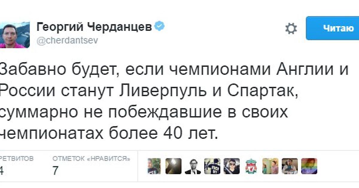 Георгий Черданцев о чемпионстве «Ливерпуля» и «Спартака»