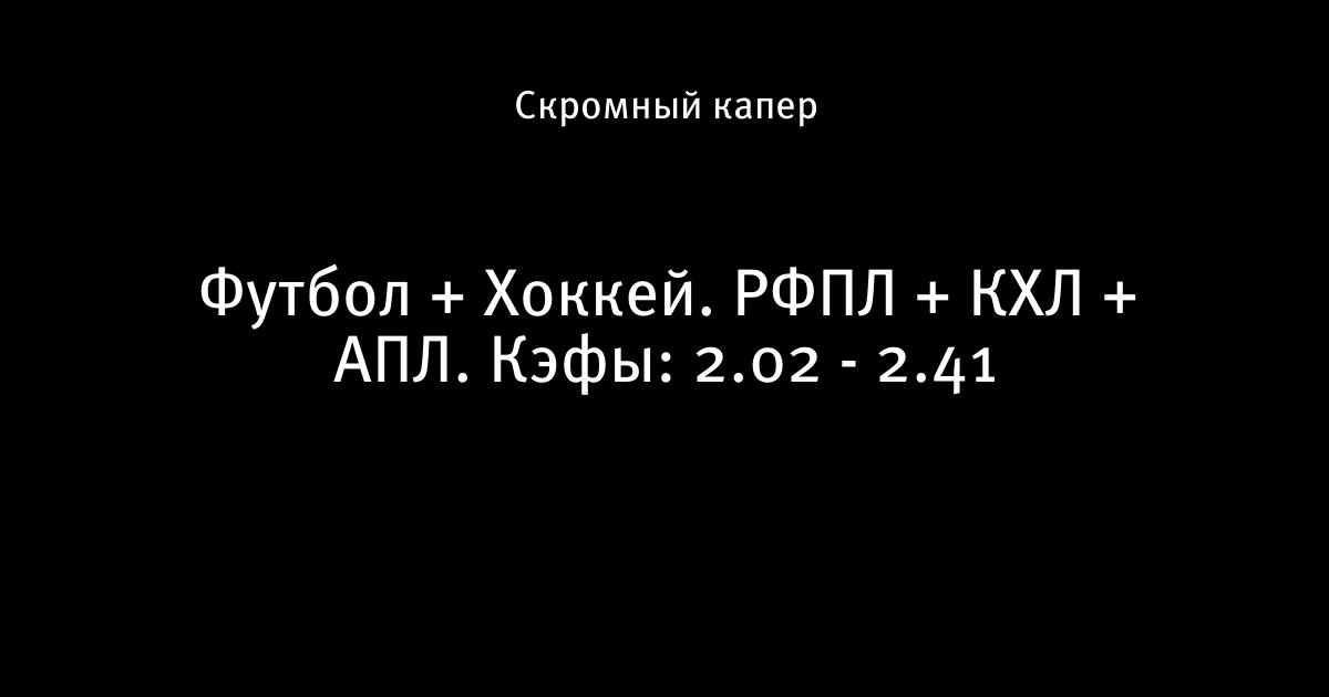Футбол + Хоккей. РФПЛ + КХЛ + АПЛ. Кэфы: 2.02 - 2.41