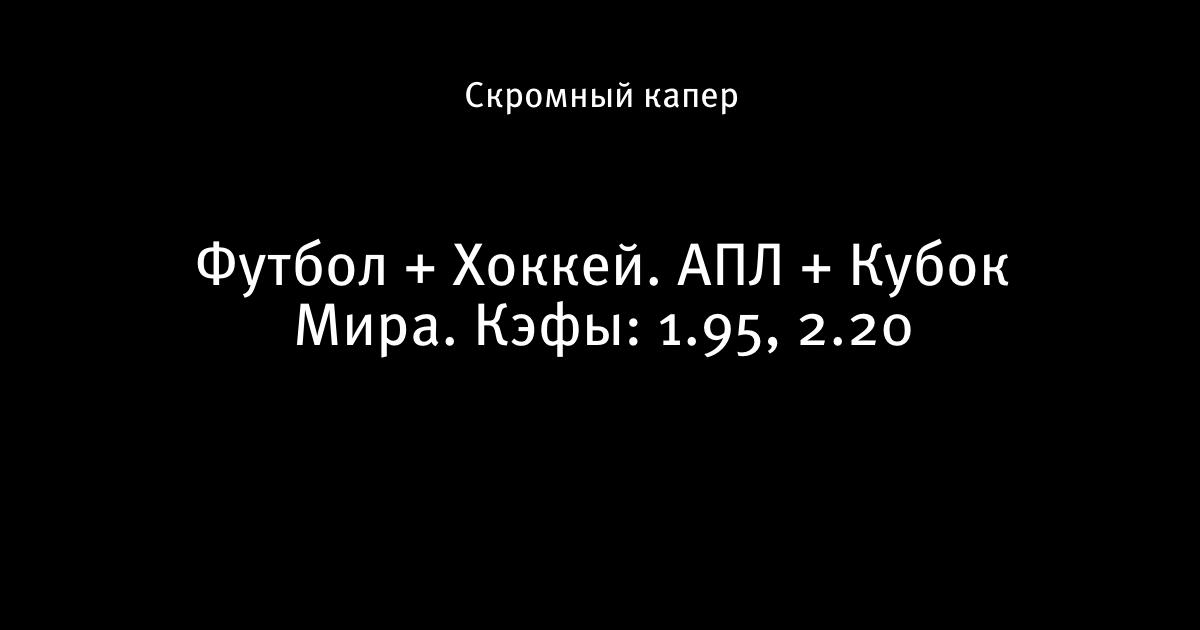 Футбол + Хоккей. АПЛ + Кубок Мира. Кэфы: 1.95, 2.20