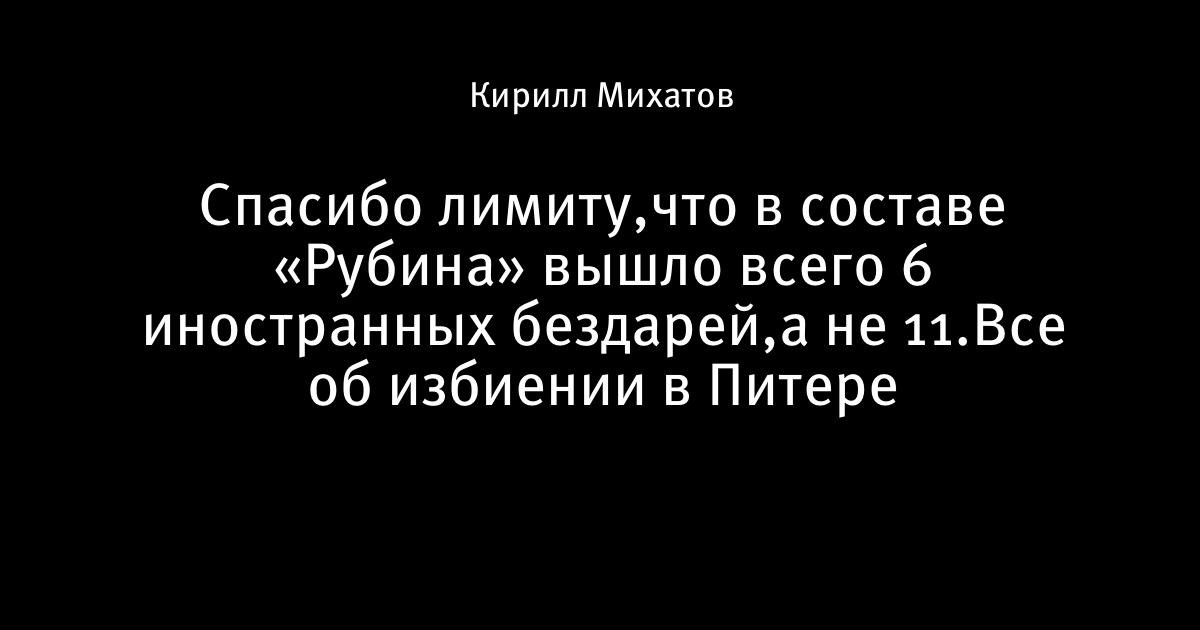 Спасибо лимиту,что в составе «Рубина» вышло всего 6 иностранных бездарей,а не 11.Все об избиении в Питере