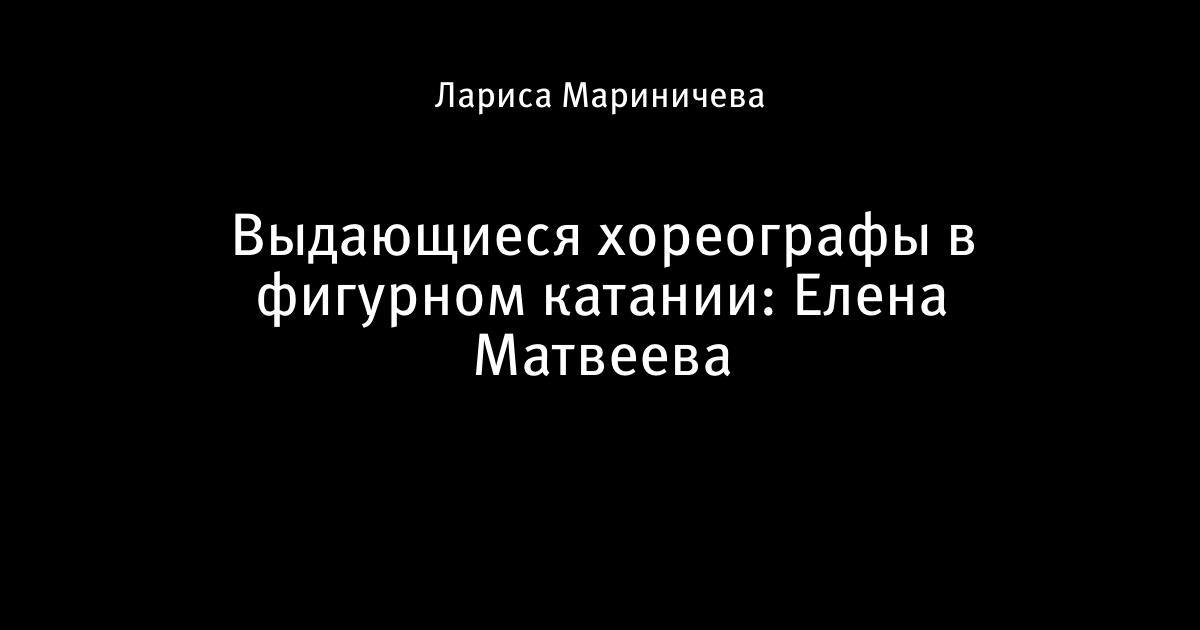Выдающиеся хореографы в фигурном катании: Елена Матвеева