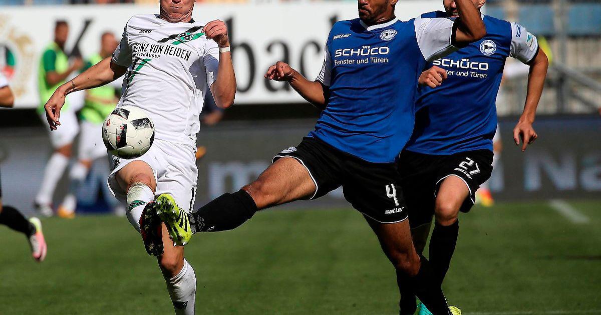 Голы начались на 26-ой минуте, когда Арминия заработала пенальти. Нападающий хозяев Клос уверенно его реализовал. Но момент, появившийся у него после, к счастью , не реализовал. Клос выходил один на один и пробил мимо вратаря, но мячу помешала штанга.