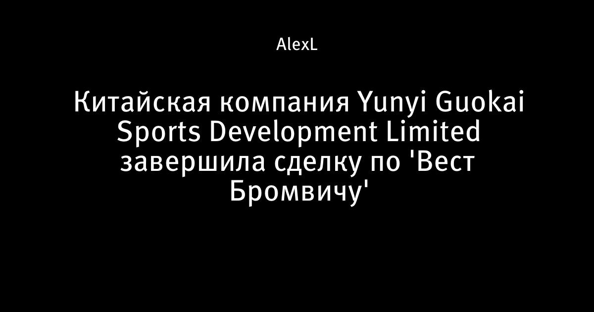 Китайская компания Yunyi Guokai Sports Development Limited завершила сделку по 'Вест Бромвичу'
