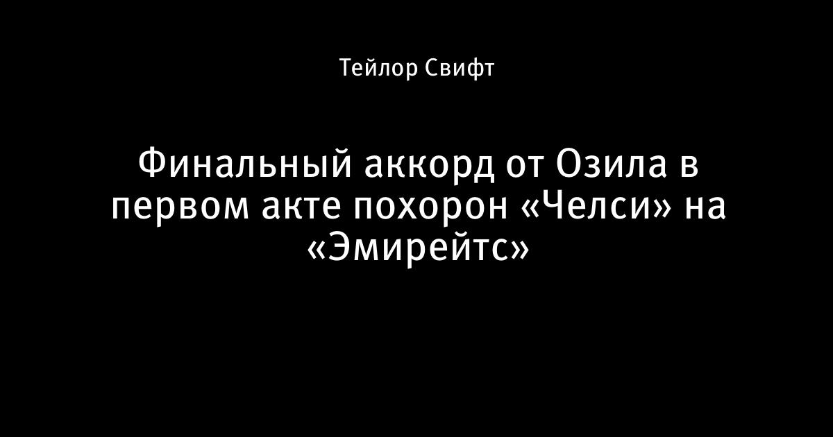 24 сентября 2016, 20:25 Финальный аккорд от Озила в первом акте похорон «Челси» на «Эмирейтс» 3:0! «Арсенал» топчет «аристократов» уже в первом тайме. Автор Тейлор Свифт Этот пост опубликован в блоге на Трибуне Sports.ru. Присоединяйтесь к крупнейшему сообществу спортивных болельщиков! Другие посты блога Тейлор Свифт Месут Озил премьер-лига Англия Арсенал Челси