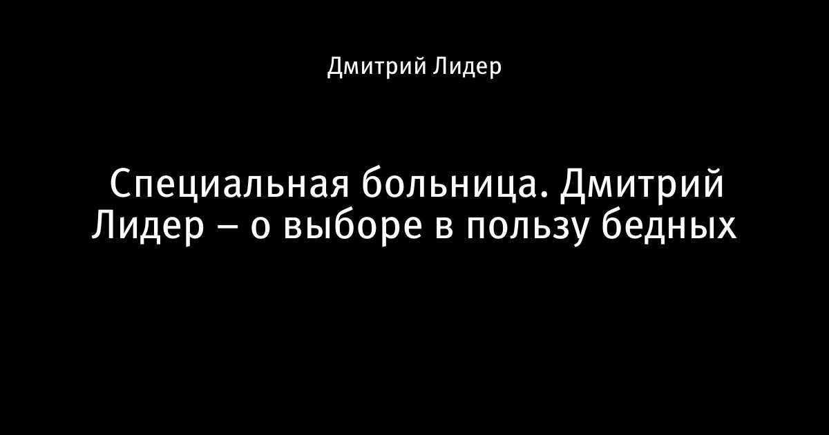 Специальная больница. Дмитрий Лидер – о выборе в пользу бедных