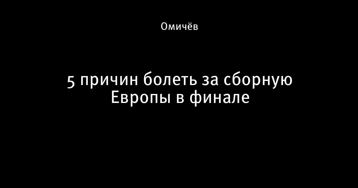 Я если честно не знал что написать 5-ым пунктом, но понимал, как он необходим. Он как первый, только, не первый. Канадцы нас выбили в 2010, здесь на турнире и хочется чтобы они ничего не выиграли. Плохо болеть против, но давайте честно, хочется родоначальников хоккея оставить без кубка. Да и в СМИ будут горячие заголовки, на sports.ru появится повод написать посты в стиле "Команда в которую не верили", "Кто такой Ральф Крюгер", "Европейская сенсация". Хоккейный мир требует чудес. Я бы не сказал что выход Европы в финал и её возможная победа в нем что-то космическое. Мало в них кто на них ставил, очень мало. Предрекали североамериканский финал (Канада - США) или Канада - Швеция, а тут раз, и новоявленная сборная. В любом случае удачи всем финале, без травм и положительных эмоций!