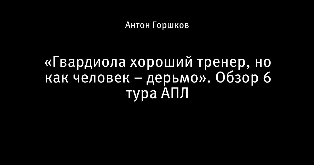 «Гвардиола хороший тренер, но как человек – дерьмо». Обзор 6 тура АПЛ