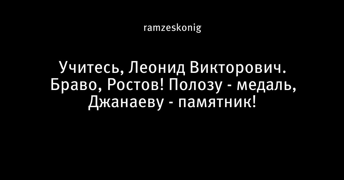 Учитесь, Леонид Викторович. Браво, Ростов! Полозу - медаль, Джанаеву - памятник!