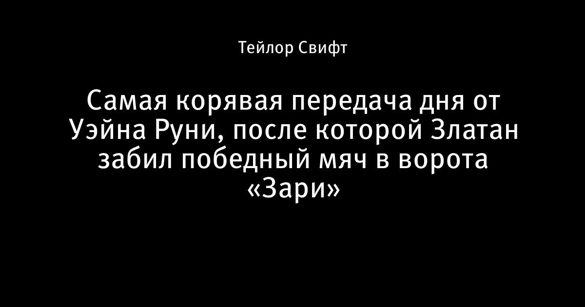 30 сентября 2016, 00:04 Самая корявая передача дня от Уэйна Руни, после которой Златан забил победный мяч в ворота «Зари» Автор Тейлор Свифт Этот пост опубликован в блоге на Трибуне Sports.ru. Присоединяйтесь к крупнейшему сообществу спортивных болельщиков! Другие посты блога Тейлор Свифт Лига Европы УЕФА Манчестер Юнайтед Заря Уэйн Руни Златан Ибрагимович