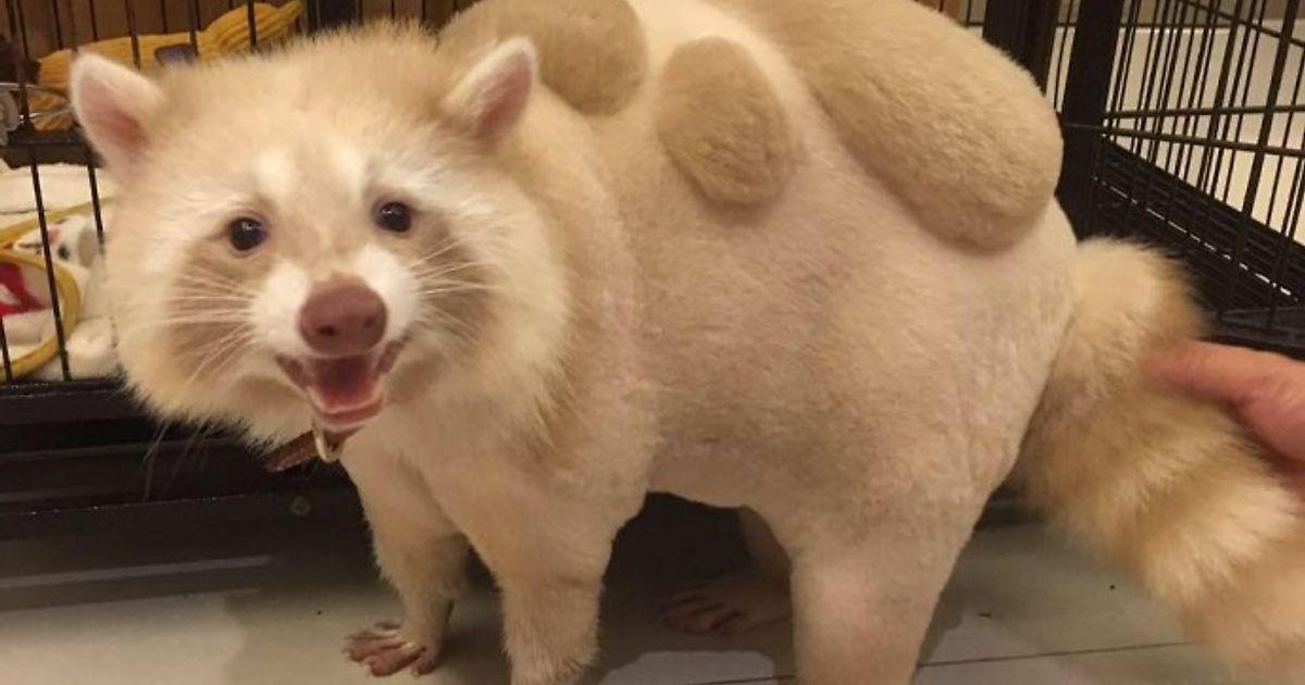 Теперь спину животного украшает фигурный рисунок. С новой стрижкой зверьку не так жарко. Шерсть енота теперь не скатывается.