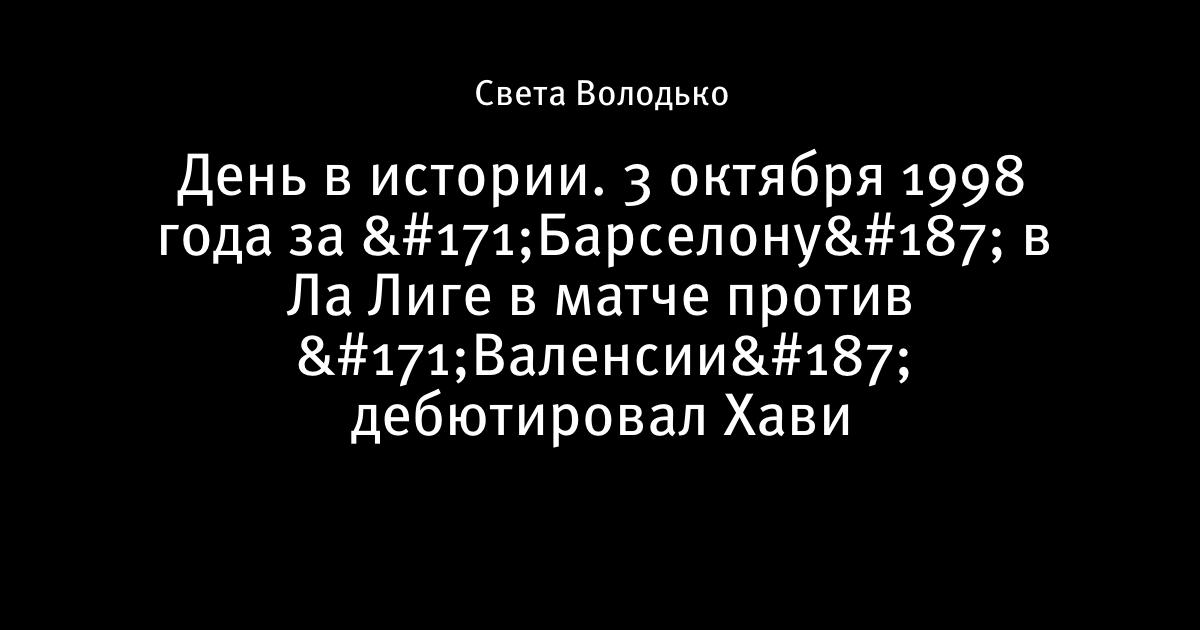 День в истории. 3 октября 1998 года за «Барселону» в Ла Лиге в матче против «Валенсии» дебютировал Хави