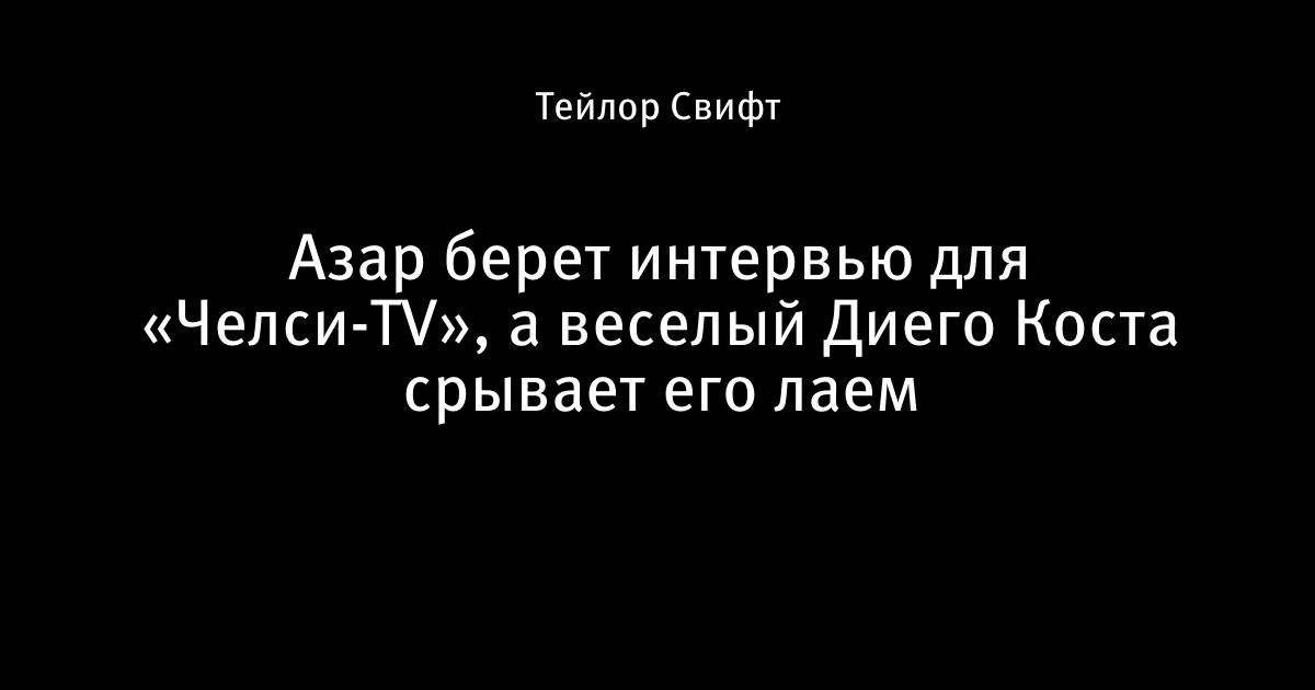 4 октября 2016, 14:46 Азар берет интервью для «Челси-TV», а веселый Диего Коста срывает его лаем Автор Тейлор Свифт Этот пост опубликован в блоге на Трибуне Sports.ru. Присоединяйтесь к крупнейшему сообществу спортивных болельщиков! Другие посты блога Тейлор Свифт Виллиан Эден Азар Челси Диего Коста