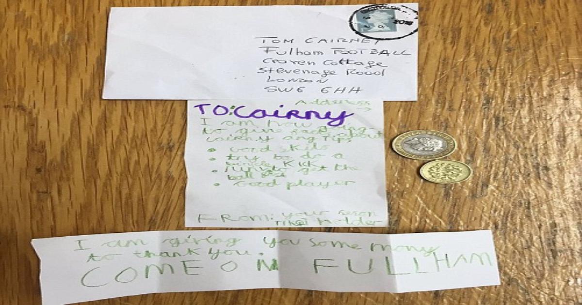 Юный болельщик «Фулхэма» поблагодарил полузащитника за хорошую игру, прислав ему три фунта