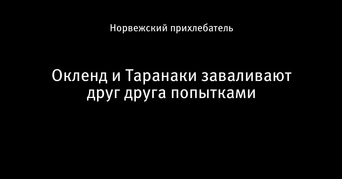 Поединок участников чемпионского плей-офф прошлого года Таранаки и Окленда на поле желто-черных при любом раскладе должен был оказать решающее влияние на дальнейшее развитие борьбы в Премьершипе: гарантировать себе одновременно два места в полуфиналах команды не могли, значит, кто-то должен был неизбежно выйти победителем из противостояния, оставив оппонента только бессильно взирать на разборки других соискателей. Вчерашняя игра Норт Харбор и Тасман наглядно продемонстрировала, что перед самым плей-офф, как говорится, «на баббле», игра выходит из-под контроля и ожидать можно чего угодно. Ровно так получилось и на этот раз – сюжет был, может, даже более залихватский, чем в предшествующей встрече.