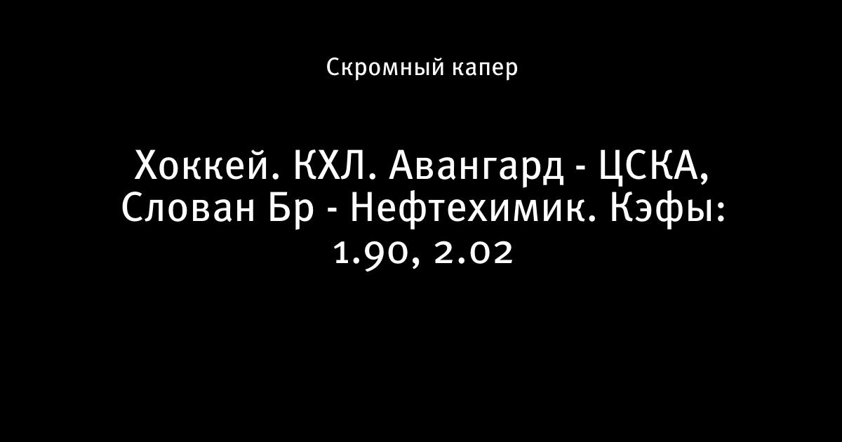 Хоккей. КХЛ. Авангард - ЦСКА, Слован Бр - Нефтехимик. Кэфы: 1.90, 2.02