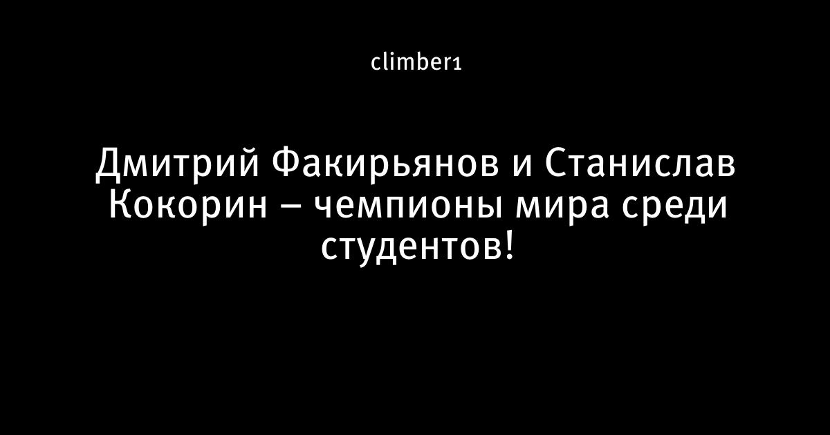 … из российских скалолазов только Дмитрий Факирьянов и Станислав Кокорин становились призерами чемпионатов мира и Европы среди студентов. Год назад на континентальном турнире в Катовице (Польша) Факирьянов завоевал золото в боулдеринге и серебро в трудности, а Кокорин - бронзу в скорости.