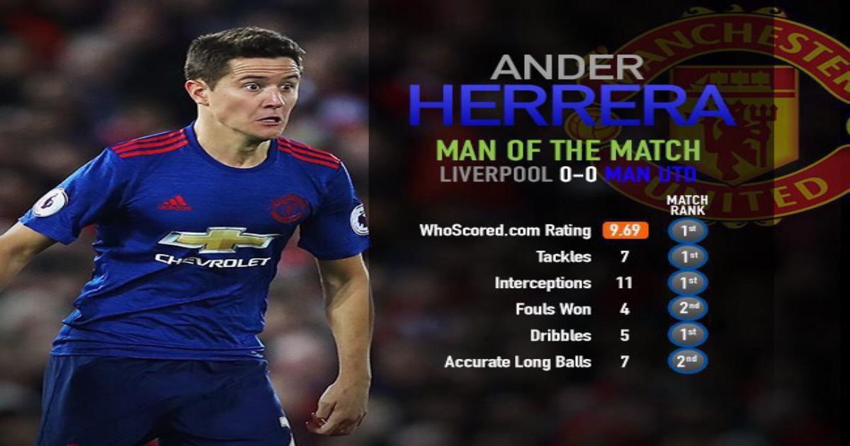 Андер Эррера сделал 11 перехватов в матче против «Ливерпуля». Больше, чем любой другой игрок АПЛ в этом сезоне